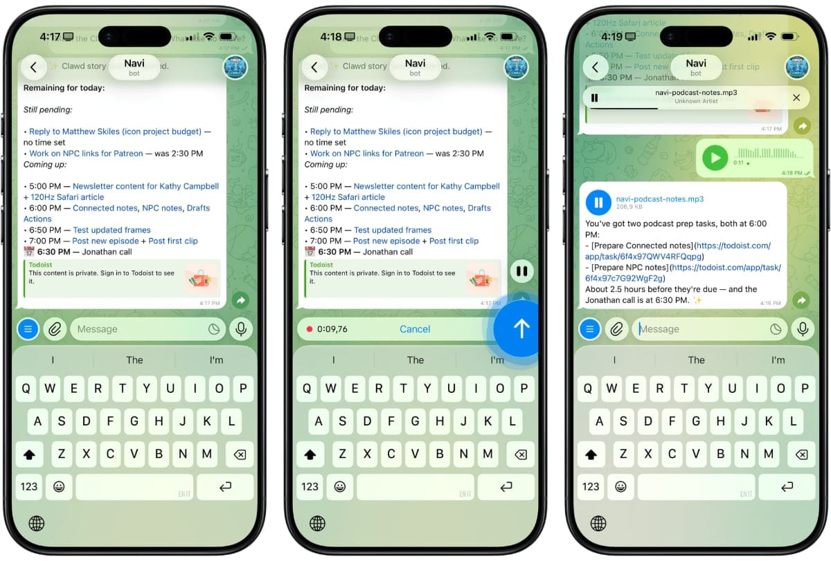 Det særlige ved OpenClaw er, at den gemmer alt lokalt på computeren som almindelige filer, og man kan bede den om at lære nye ting. For eksempel fik Viticci den til at lave en automatisk opgave, der tjekker hans RSS-feed og opretter nye projekter i hans Todoist-app - noget han tidligere betalte for gennem Zapier.